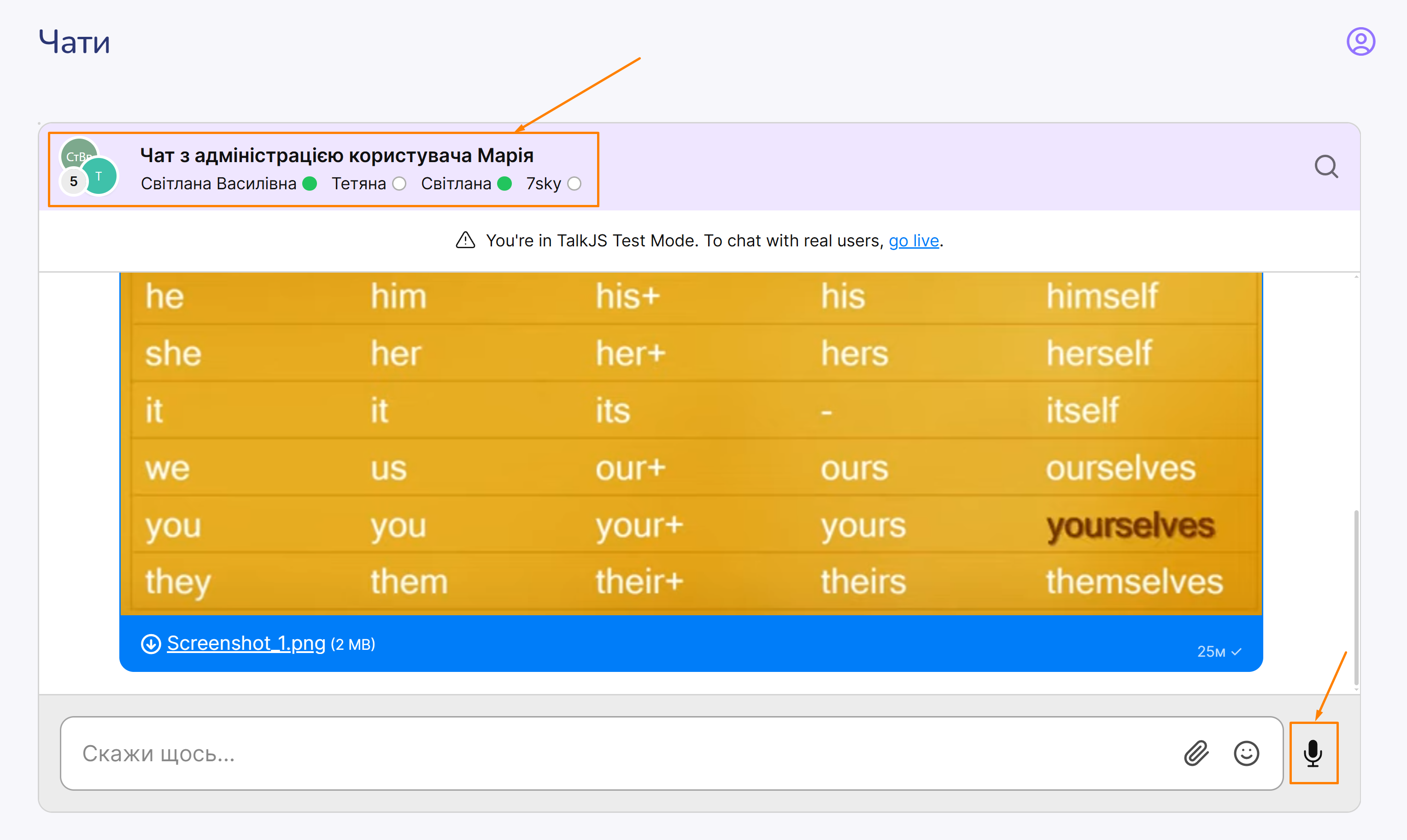 За необхідності, учень може також скористатися голосовим повідомленням.