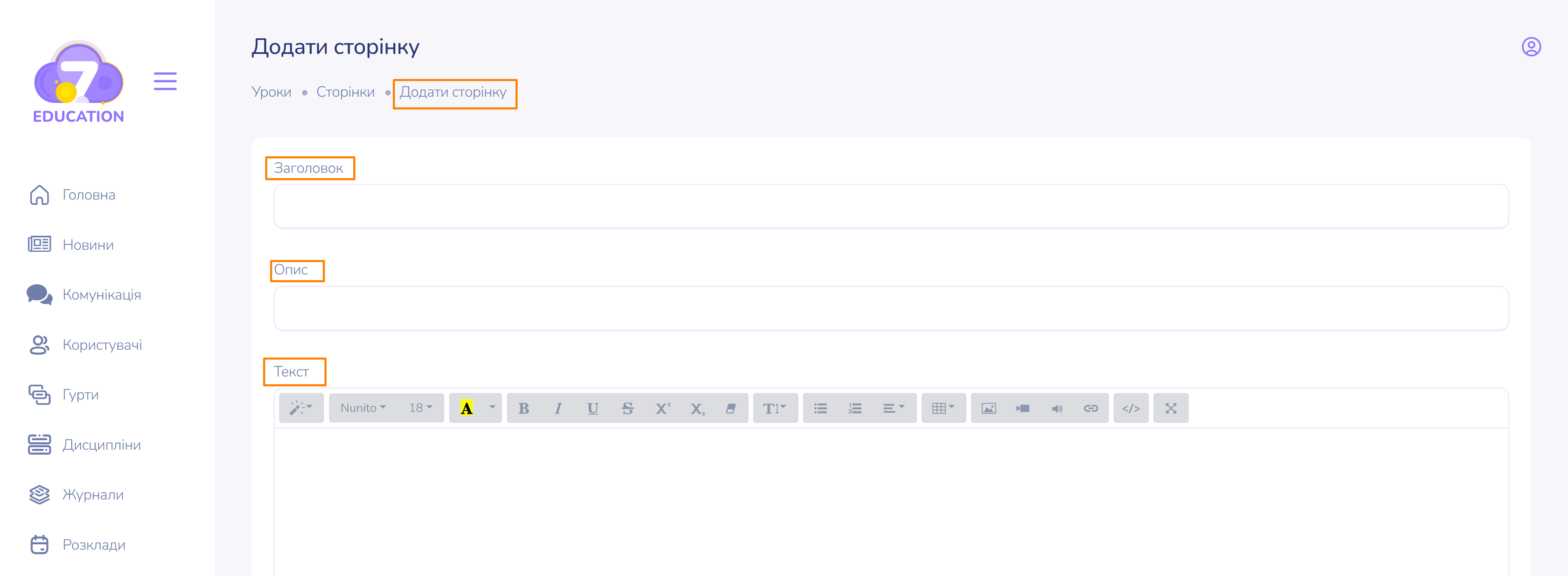 Сторінка є елементом, який додають до уроків. Посилання на сторінки можна інтегрувати через гіперпосилання.